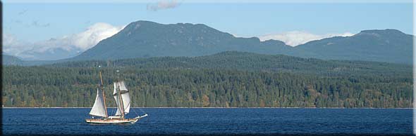 Mt. Pocohontas, accessible by foot at 1745 ft., offers splendid 360 degree views of the Coast Mountain Range on the mainland, and Vancouver Island to the east.